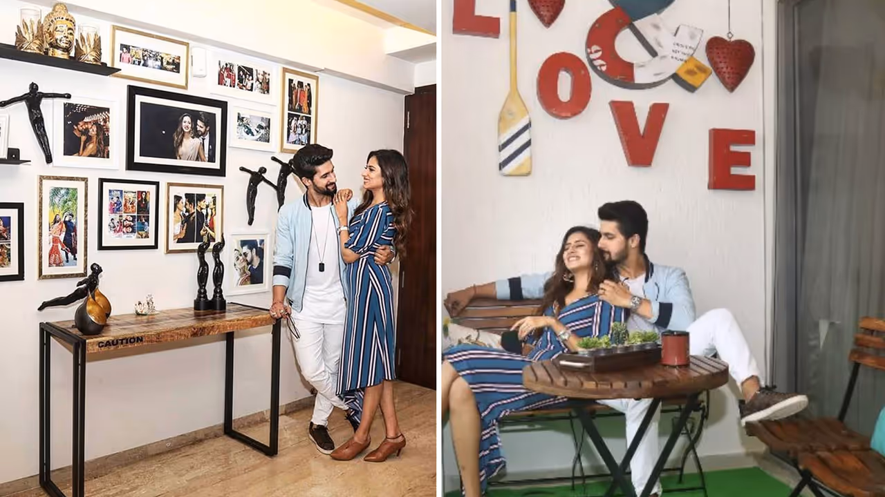 रवि दुबे के अपार्टमेंट में एक बड़ी बालकनी है, जहां से मुंबई की स्काईलाइन दिखती है। कपल ने यहां आर्टिफिशियल घास और लकड़ी के फर्नीचर के साथ इसे गार्डन का लुक दिया है।