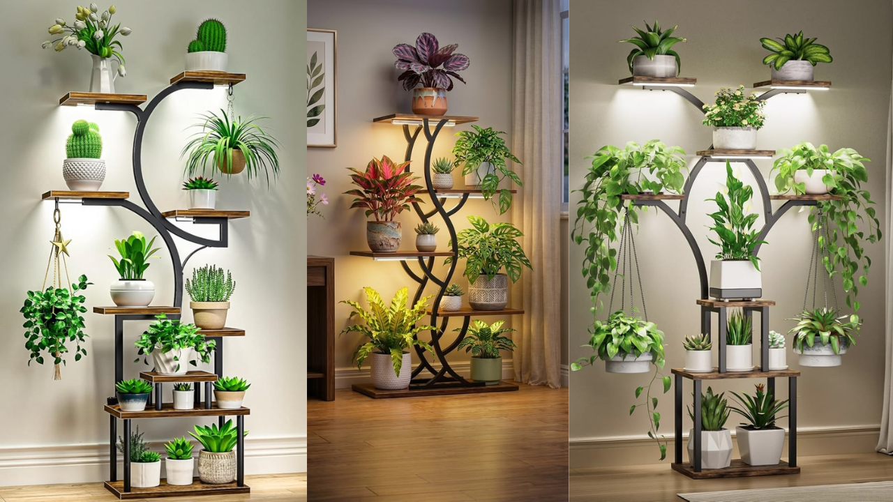 घर में धूप आने का संसाधन नहीं है तो ग्रो लाइट वाला स्टैड चुनना ज्यादा सस्टेनबल विकल्प है। तस्वीर में मेटर फ्रेम के साथ इनबिल्ट LED स्ट्रिप्स लाइट लगी है। इन्हें मेटल फ्रेम पर बनाया गया है जो बहुत क्यूट और लग्जरी फील देते हैं। आप इसे हाल के अलावा बेडरूम, ऑफिस कैबिन में रख सकते हैं। ऑनलाइन-ऑफलाइन 5000-9000रु तक इनकी ढेरों वैरायटी मिल जाएंगी।