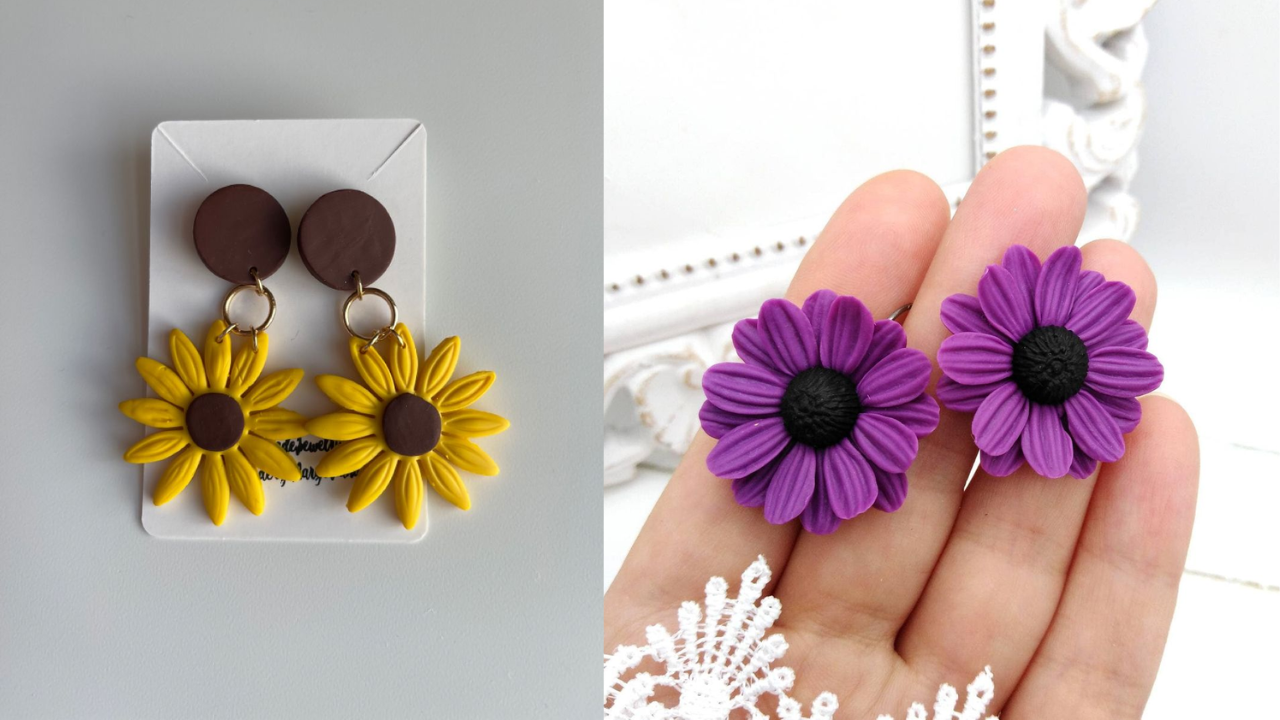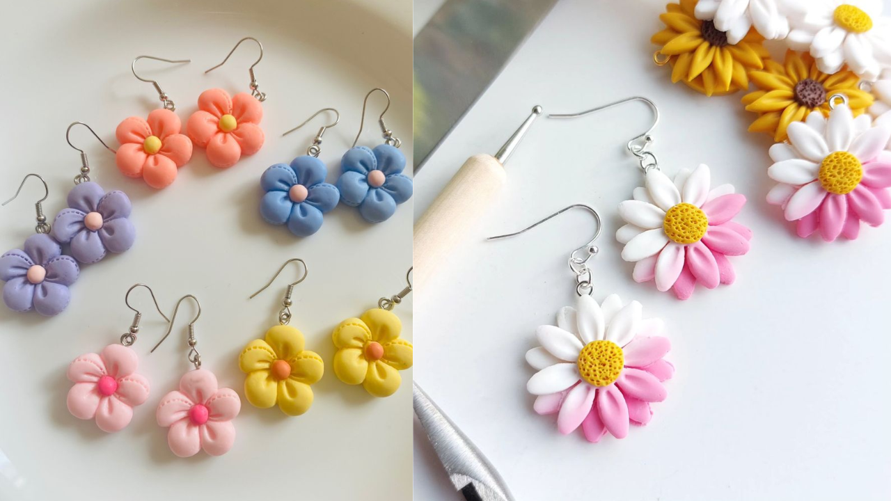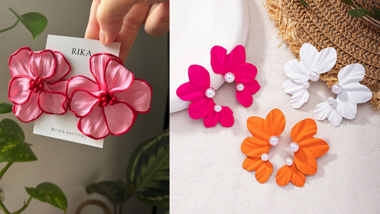 यह क्ले इयररिंग्स 3d डिजाइन से इंस्पायर्ड हैं। अगर आप क्यूट, चुलबुला और मिनिमलिस्टिक लुक पसंद करती हैं तो इसे चुन सकती हैं। इसमें 5 पंखुड़ियों वाला बेसिक फ्लावर है, जो कंट्रास्ट कलर रंग संग आता है। चूंकि ये इयररिंग्स वाइब्रेंट कलर पर है ऐसे में आप इन्हें पेस्टल या फिर व्हाइट कलर आउटफिट पर स्टाइल करें।