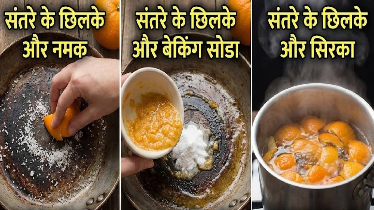 Kitchen Cleaning Hacks: रोजाना खाना बनाने से पैन का काला होना आम बात है। जला हुआ पैन न सिर्फ देखने में खराब लगता है, बल्कि उसे साफ करना भी मुश्किल होता है। महंगे केमिकल क्लीनर इस्तेमाल करने के बजाय, आप संतरे के छिलकों का इस्तेमाल करके अपने पैन को मिनटों में फिर से चमका सकते हैं। संतरे के छिलकों में मौजूद नेचुरल एसिड और तेल चिकनाई और जले हुए दाग हटाने में बहुत असरदार होते हैं। आइए जानते हैं संतरे के छिलकों से अपने पैन को साफ करने के 3 आसान किचन हैक्स।
