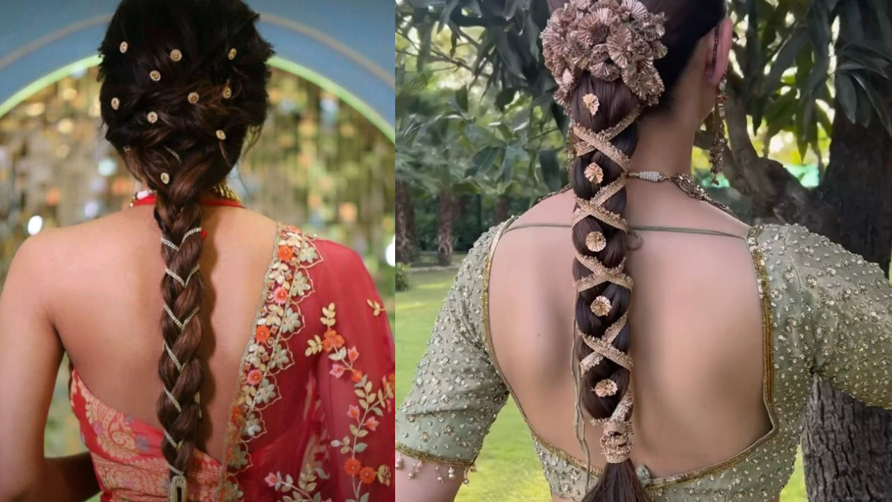 2) ब्रेड हेयर स्टाइल विद एक्ससेरीज ( Braid Hairstyle with hair accessories for women)