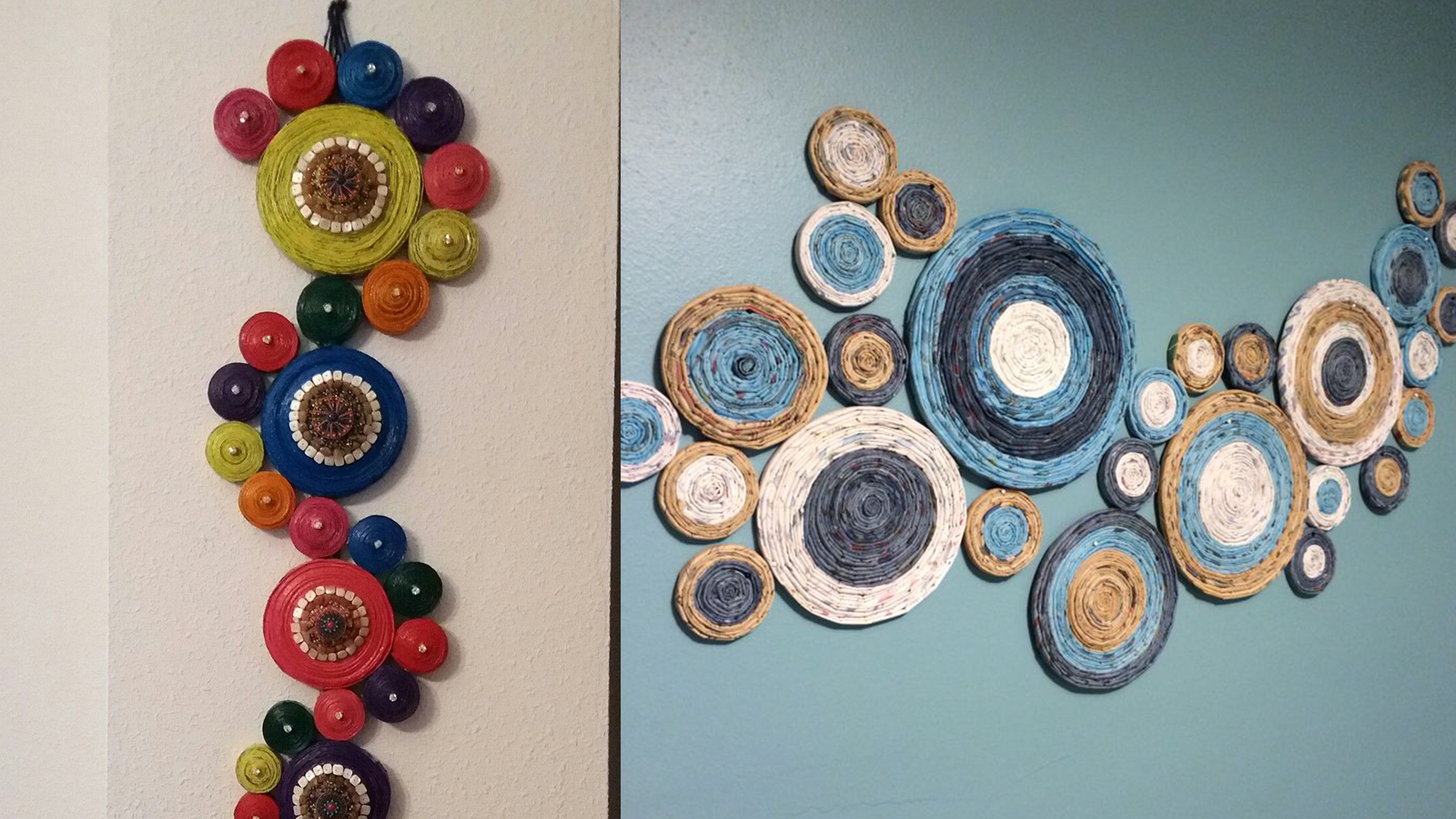 पुराने न्यूजपेपर का इस्तेमाल आप वॉल हैंगिंग बनाने के लिए भी कर सकते हैं। रद्दी पेपर के टुकड़ों को छोटे-छोटे राउंड सर्किल में अटैच करके एक रस्सी की मदद से आपस में जोड़े। इसे आप वर्टिकली या होरिजेंटल वॉल हैंगिंग बना सकते हैं।