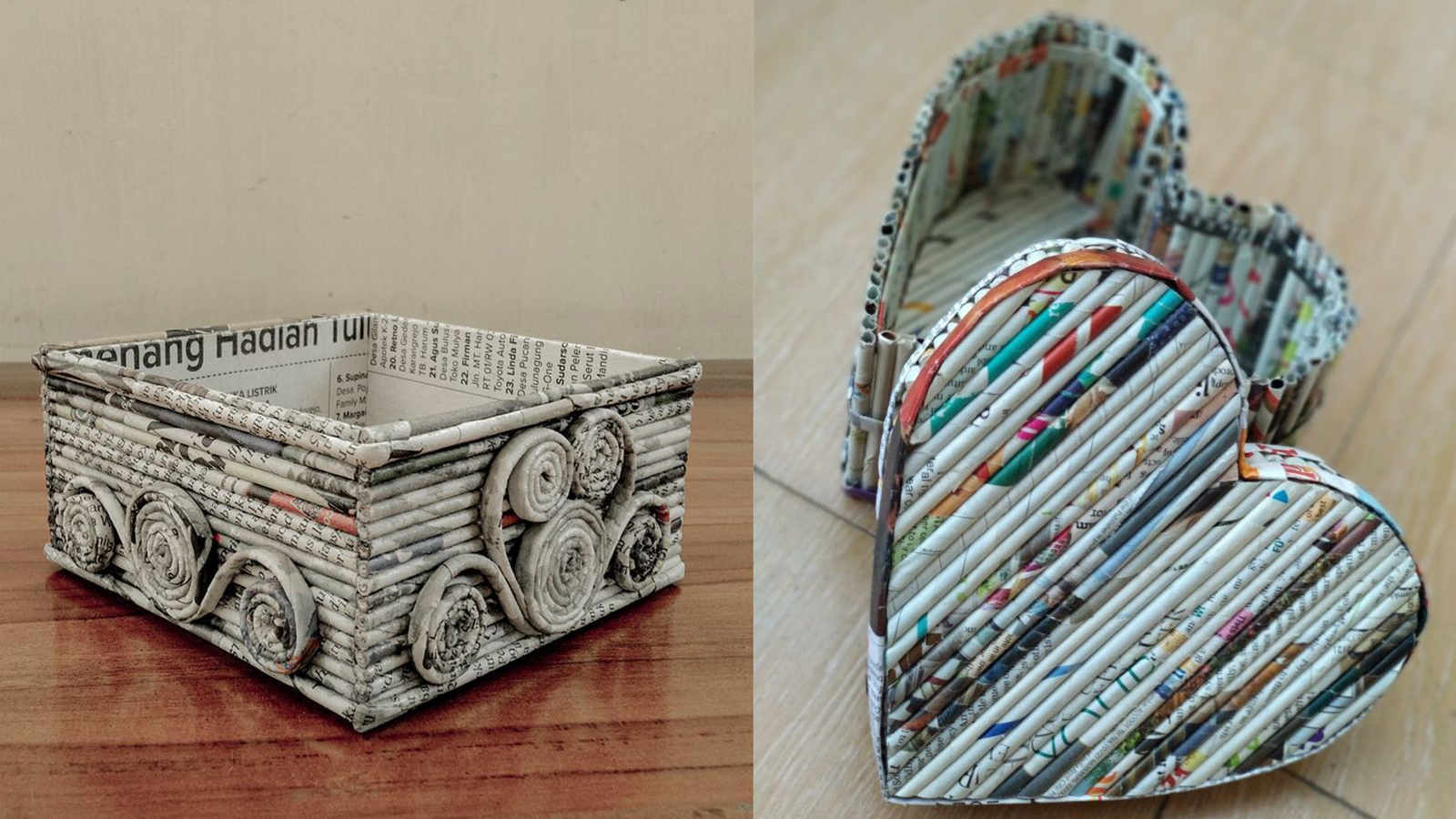 पुराने न्यूजपेपर से आप गिफ्ट बॉक्स या स्टोरेज बॉक्स बना सकते हैं। अखबार को रोल करके आपस में स्टिक करते जाए, इसकी बास्केट बनाएं या फिर हार्ट शेप का कंटेनर बनाएं। इसका इस्तेमाल आप अपनी छोटी-छोटी चीजों को रखने के लिए या गिफ्ट पैक करने के लिए कर सकते हैं।