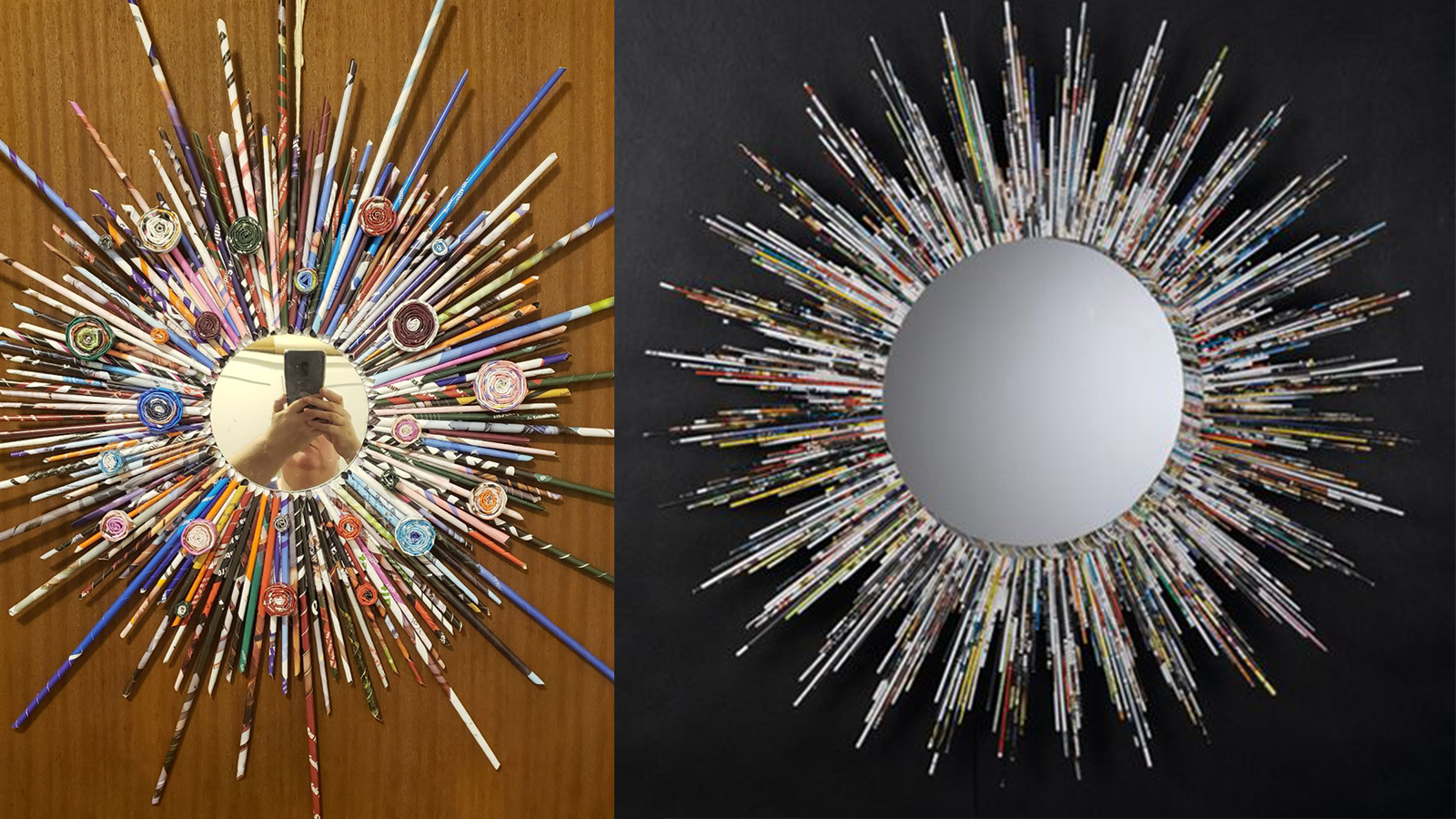 न्यूजपेपर की मदद से आप मिरर वॉल डेकोर भी बना सकते हैं। छोटे से राउंड मिरर के आजू-बाजू न्यूजपेपर को रोल करके छोटे से बड़े साइज में स्टिक करते जाएं। इसे ऐसा ही रहने दें या फिर कलर करके इसे और ज्यादा वाइब्रेंट लुक दें।