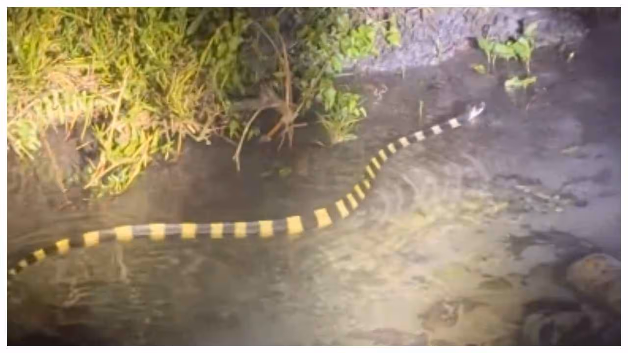 एक IFS अफ़सर ने रात की गश्त के दौरान देखे गए एक बहुत ही ज़हरीले सांप का वीडियो शेयर किया है। सोशल मीडिया, खासकर एक्स पर एक्टिव रहने वाले IFS ऑफिसर परवीन कासवान ने अंधेरे में पानी से गुज़रते हुए एक बैंडेड करैत (Banded Krait) का वीडियो शेयर किया। टॉर्च की रोशनी में उसकी काली और पीली धारियां बहुत साफ़ दिख रही हैं। इस वीडियो ने, खासकर सांप के काले और पीले रंग ने, तुरंत लोगों का ध्यान खींचा।