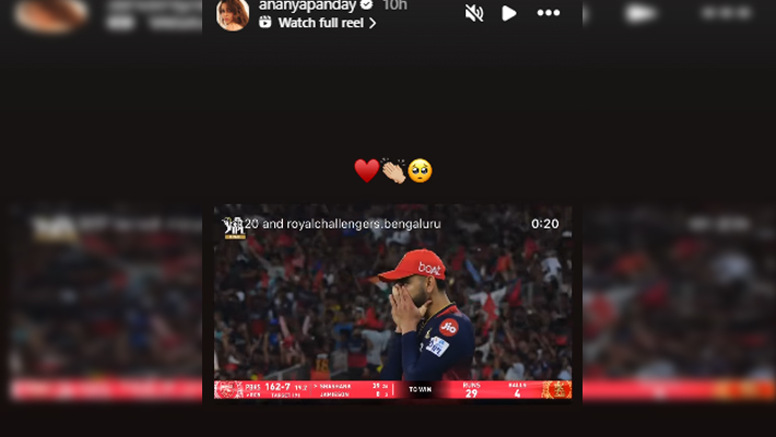 अनन्या पांडे विराट कोहली को रोता देख इमोशनल हो गई और उन्हें सोशल मीडिया पर विराट कोहली की फोटो शेयर करते हुए रोने वाली इमोजी बनाई।