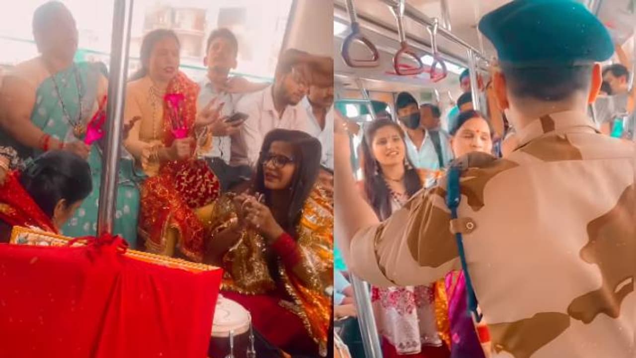 दिल्ली मेट्रो में महिलाओं द्वारा कीर्तन करने का वीडियो वायरल। CISF जवान के आने पर माफ़ी मांगकर कीर्तन बंद किया गया। नियमों के अनुसार, मेट्रो में ऐसा करना मना है।