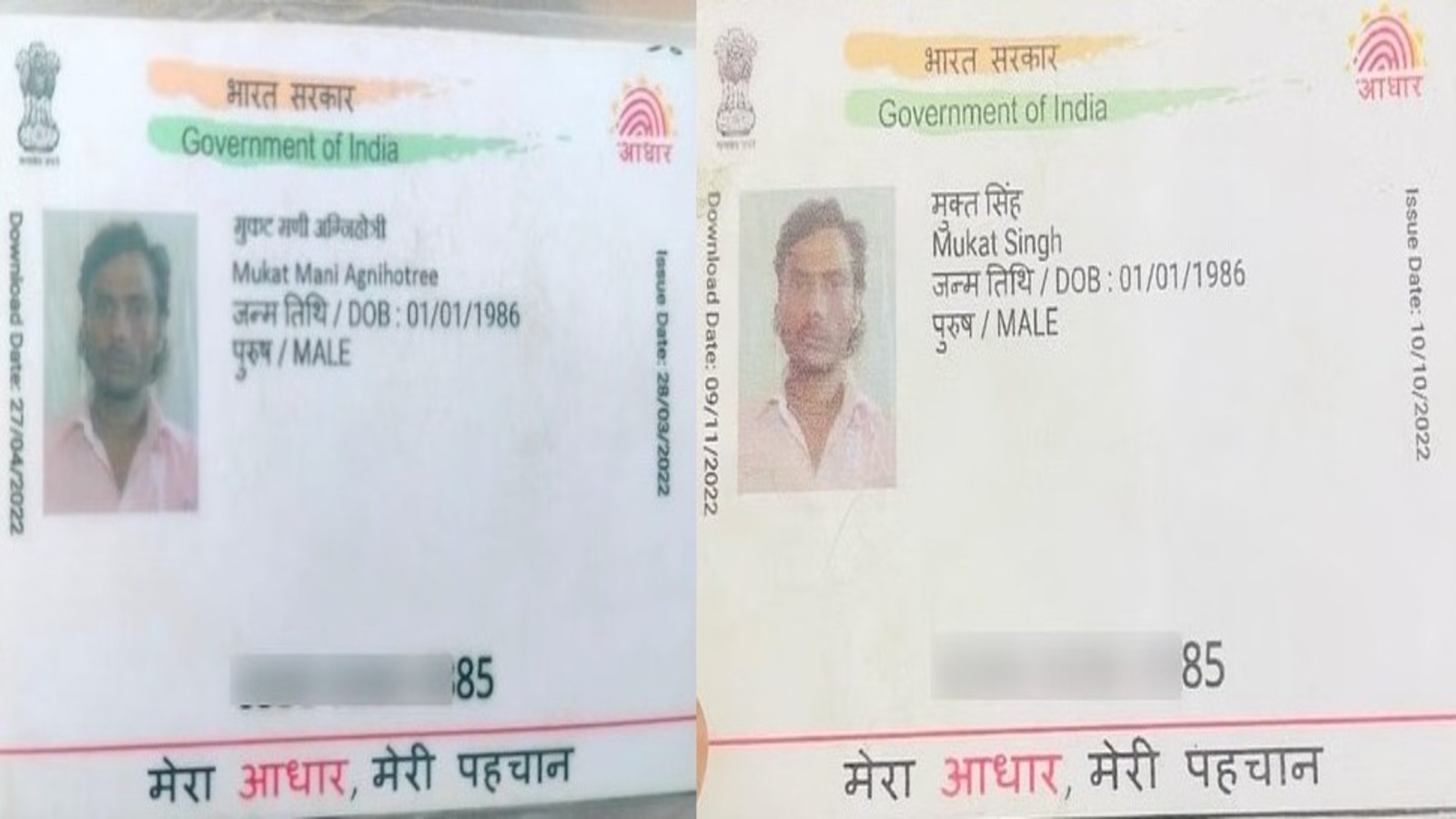 दो आधार कार्ड और नई उलझन