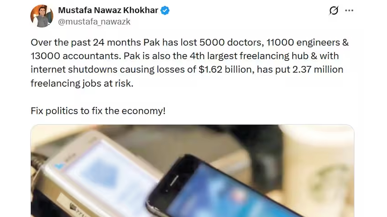 बता दें कि इस रिपोर्ट को पूर्व पाकिस्तानी सीनेटर मुस्तफा नवाज खोखर ने हाइलाइट किया था। खोखर ने इमिग्रेशन डेटा के साथ ट्वीट किया, "इकोनॉमी को ठीक करने के लिए पॉलिटिक्स को ठीक करें। पाकिस्तान चौथा सबसे बड़ा फ्रीलांसिंग हब भी है और इंटरनेट बंद होने से $1.62 बिलियन का नुकसान हुआ है, जिससे 2.37 मिलियन फ्रीलांसिंग नौकरियां खतरे में पड़ गई हैं।